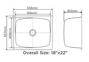 Overall Sink Size: 18″x22″ | 457×558 mm